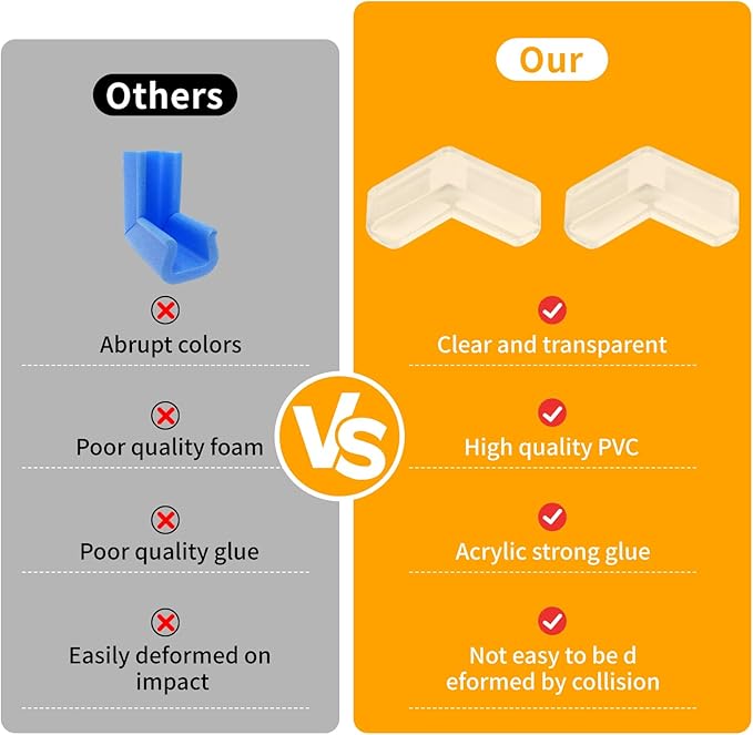• Transparent and Clear: Corner Protector Baby The transparent and flawless design makes the table corner protectors almost visually integrated with the furniture, without harming the original aesthetics of the furniture. Baby corner protector guards make family members feel more naturally comfortable in their daily lives.
