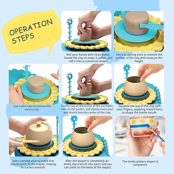 • 【FUN SCREEN-FREE FAMILY TIME】A friendly pottery wheel designed for beginners is an ideal gift for children who love DIY! Parents share hands-on fun with their children, challenge themselves, build creative and commemorative works together.