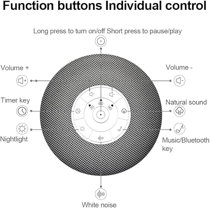• 🔊 39 High-Fidelity Non-Looping Sounds: Immerse yourself in a library of 39 premium sounds including white noise, pink noise, brown noise, rain, ocean waves, and gentle melodies. Effectively masks disruptive noises for uninterrupted sleep, focus, and relaxation for all ages
