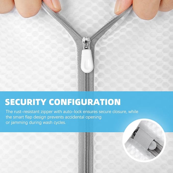 • 【Premium Anti-Rust Zippers with Auto-Lock Technology】 Features rust-proof #5 zippers with smart locking mechanism and elastic guards to prevent openings during wash cycles - enjoy quiet, tangle-free laundry every time. Please do not put in too much laundry. Keep the capacity around 2/3 for smoother washing.