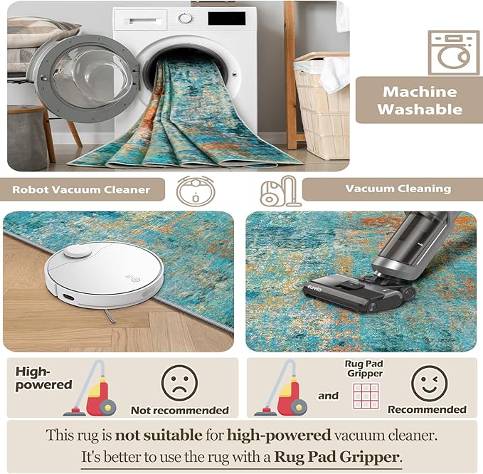 • Thin Design & Folding Packaging: this rugs with moderate thickness not only decor your home, soft on touch but also can be easily placed behind doors and under furniture. The sweeping robot can move around to clean the area rug. The thin design also makes it convenient for you to put the rugs into the washing machine for cleaning and easy to store.