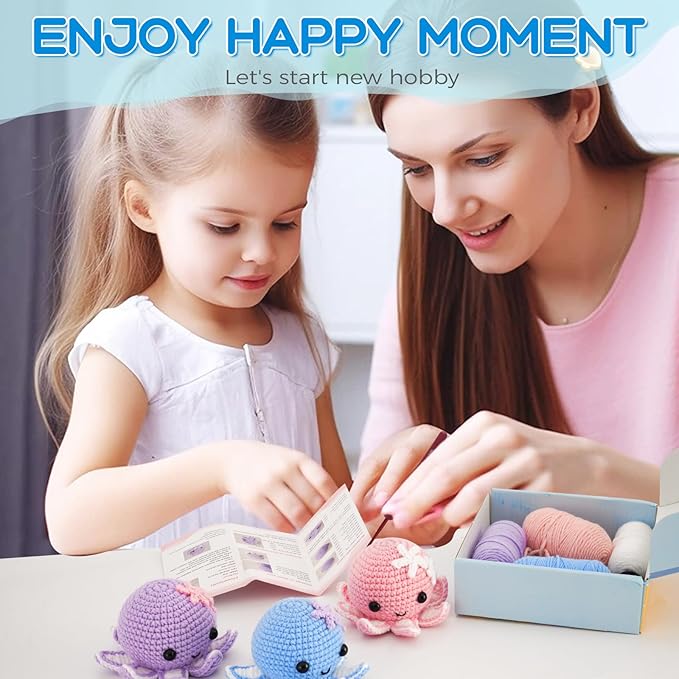 • Extra 40% Yarn for Confidence:In every Octopus Crochet Animal Kit, we include 40% more yarn per color. That way, beginners can practice, make mistakes, and master their stitches—without worrying about running out.