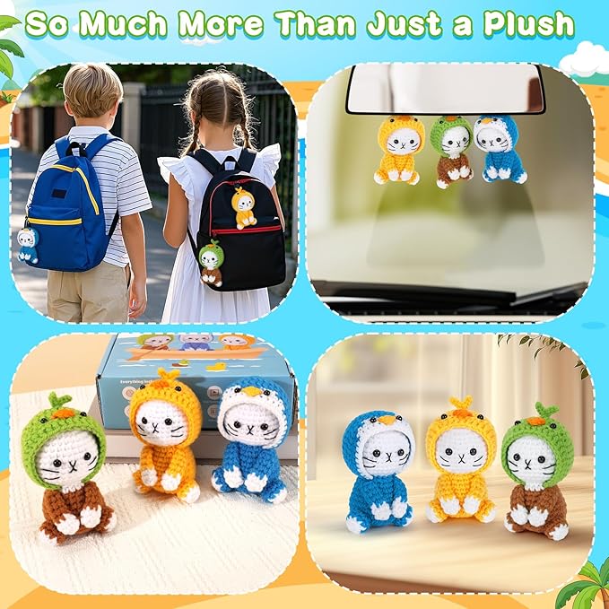 • Create Three Adorable Cat Companions: This kit includes ample crochet accessories to crochet 3 cute cats dressed as ducks and penguin. The finished crochet cats can be used as a home decorations, adorable children's toys, car pendants, bedroom ornaments, bag charms, or key chain. Enjoy the joy of craft and the pride of making your own cute animal figures.