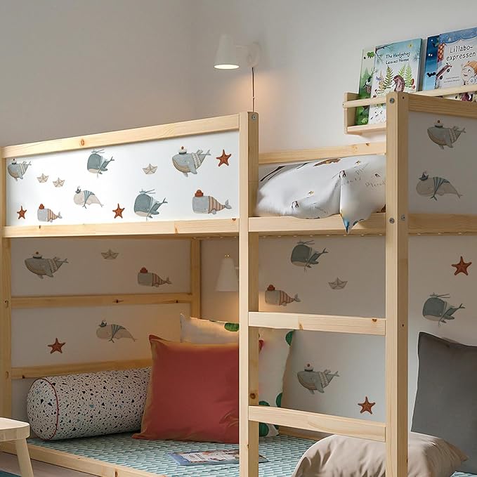 • Ocean Theme for Kids’ Rooms: These ocean wall decals feature whales, fish, and bubbles, creating a peaceful underwater scene. Ideal for nurseries, toddler bedrooms, or playrooms—especially great wall decals for boys who love sea animals