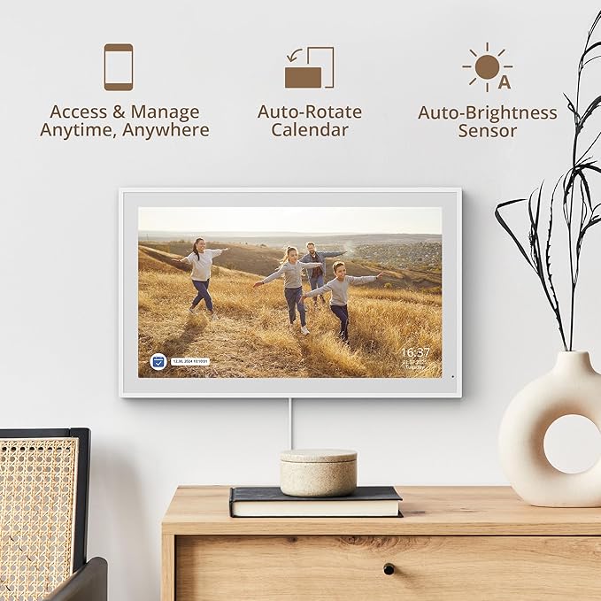 • 【Charming Digital Picture Frame】: When not in use, your smart calendar transforms into a beautiful digital picture frame. Showcase treasured family photos on the crystal-clear 21.5" large touchscreen, adding a touch of elegance to any room as modern home decor.