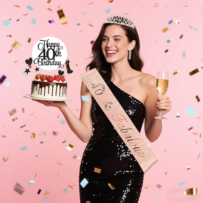 • 40th Rhinestone Crown & Sparkly Sash: The birthday sash, made of soft fabric via hot-press stamping glitter technique, features superior quality with non-shedding glitter and rose gold 40&Fabulous letters. The crown, crafted from sturdy hard alloy with dazzling rhinestones, is meticulously designed for 40th birthday parties.