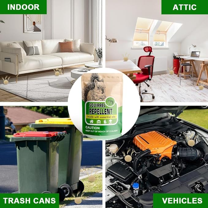 • Ready to Use: Simply place or hang the squirrel repellent in areas prone to squirrel activity.