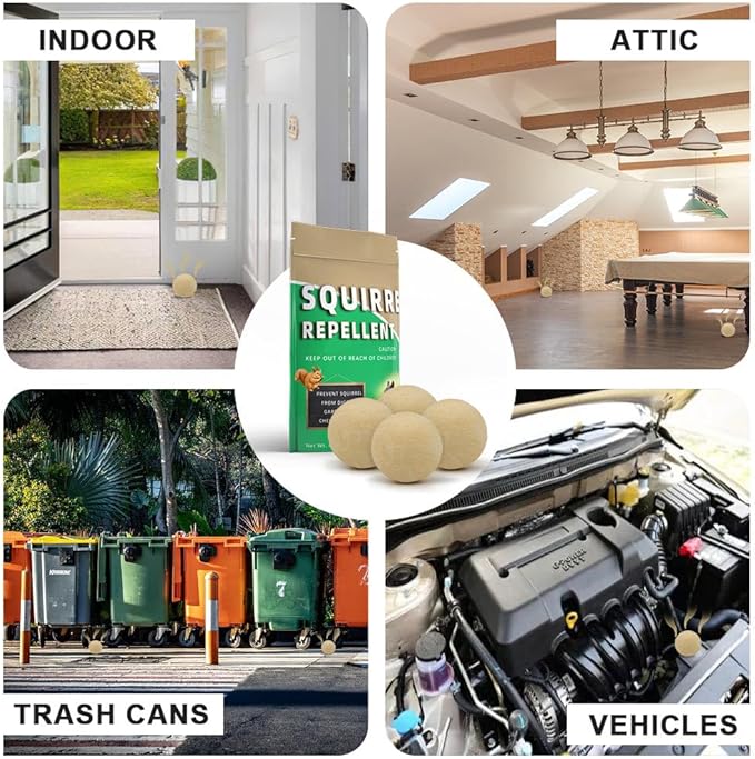 • Ready to Use: Simply place or hang the squirrel repellent in areas prone to squirrel activity.