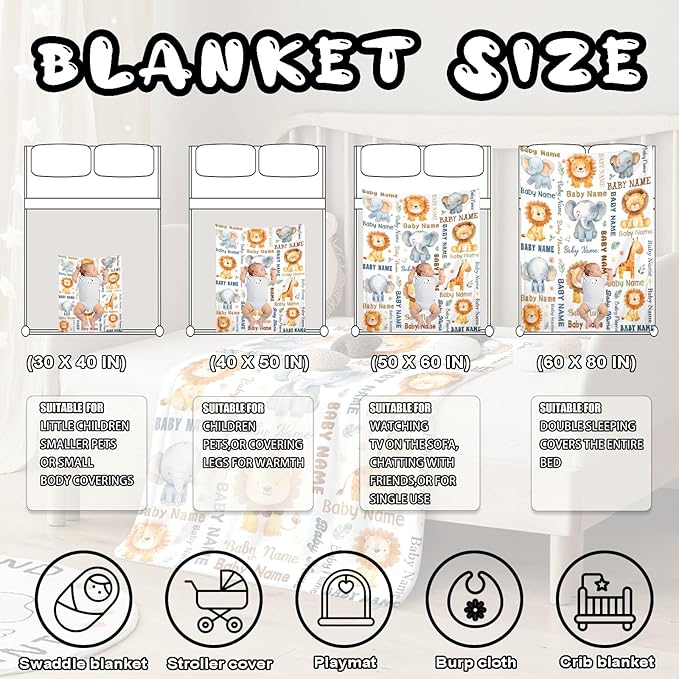 • Custom Baby Gifts Your Family Will Cherish -- Imagine the delight when parents unwrap this personalized baby blanket with name printed just for their little one. Ideal for newborns, toddlers, or kids, this blanket becomes a sentimental heirloom they’ll treasure. Click “Customize Now” and easily enter the name to create a unique custom baby blanket - the ultimate baby shower gift or birthday gift for baby girls or boys.