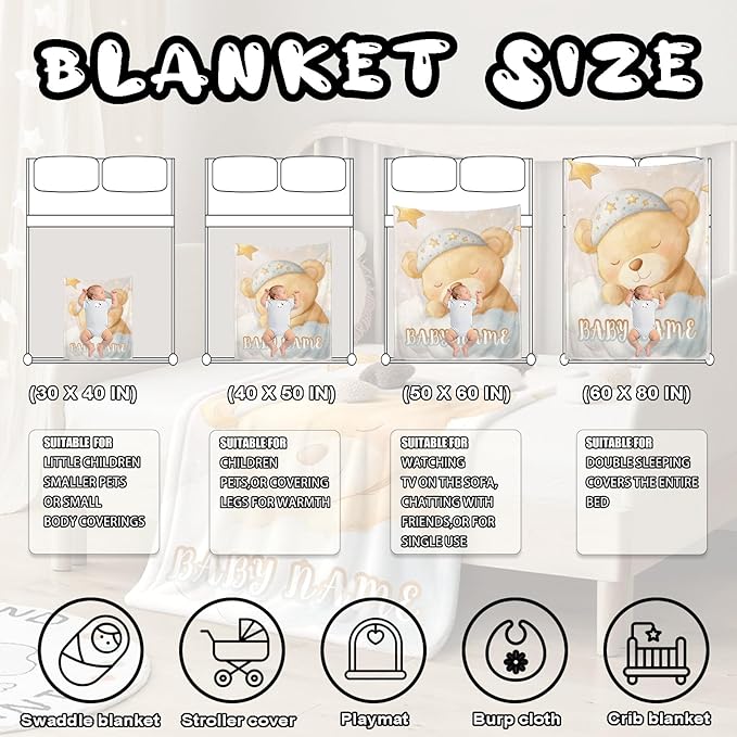 • Baby Gift Opportunities for Every Occasion -- Searching for a thoughtful and memorable present? This custom blanket with name is the ideal choice. Whether it’s a baby shower gift, Easter, Christmas, Mother’s Day, birthday, or a first-month celebration, its personalization and premium feel convey deep care and attention.