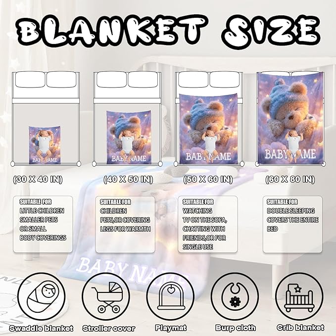 • Baby Gift Opportunities for Every Occasion -- Searching for a thoughtful and memorable present? This custom blanket with name is the ideal choice. Whether it’s a baby shower gift, Easter, Christmas, Mother’s Day, birthday, or a first-month celebration, its personalization and premium feel convey deep care and attention.