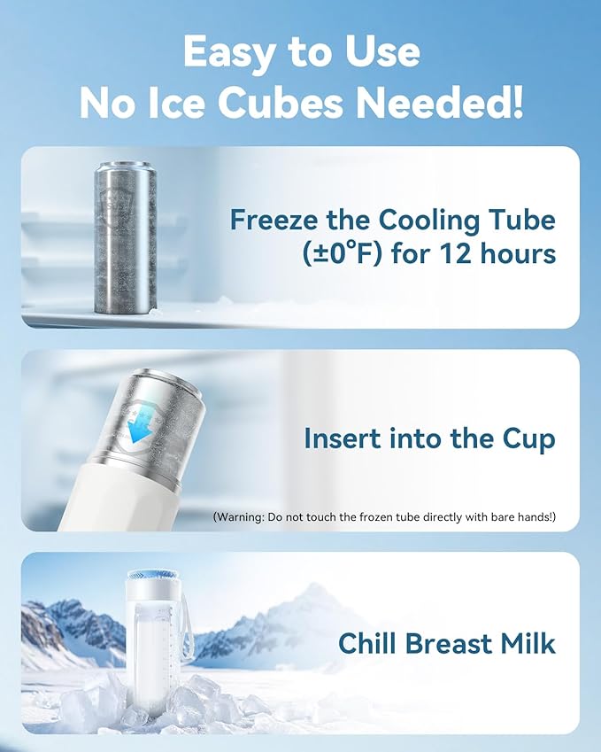 • Easy to Use-No Ice Cubes Needed! 【1】Freeze the Cooling Tube-Place the Innoworld 360° stainless steel cooling tube in your freezer (±0°F) for 12 hours.【2】Insert into the Cup-Carefully transfer the frozen cooling tube into the vacuum-insulated cup body. (Warning: Do not touch the frozen tube directly with bare hands!)【3】Chill Breast Milk -Place your breast milk storage bottle inside the cooling tube, and enjoy 24+ hours of safe, ice-free cooling!
