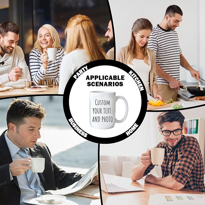 Custom Mug Upload Your Picture Personalized Coffee Mug with Photo Text Name Customized Cup Unique Ideas Gifts for Men Women Mom Dad Girlfriend Boyfriend Friend Family (White, 15oz)