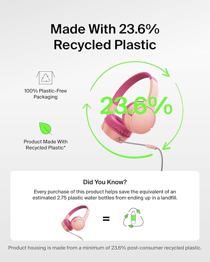 • BUILT-IN MICROPHONE & SAFE SOUND: The wire has a built-in microphone for video and phone calls. And with Belkin Signature Sound with audio tuned specifically for kids, this headphone set has an 85dB volume limiter to protect your little one's ears.