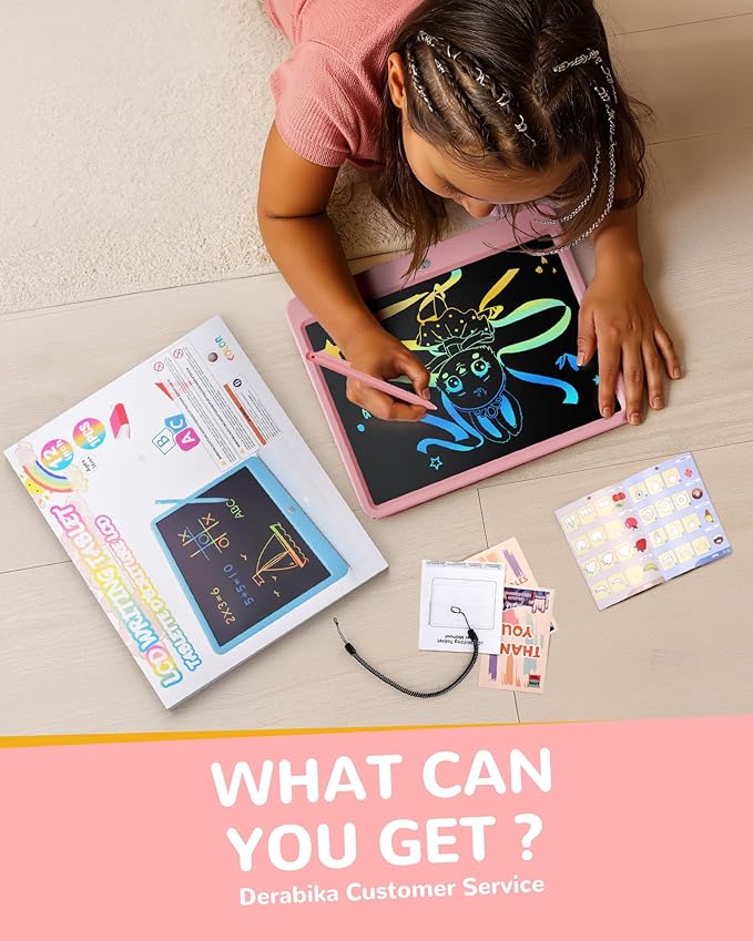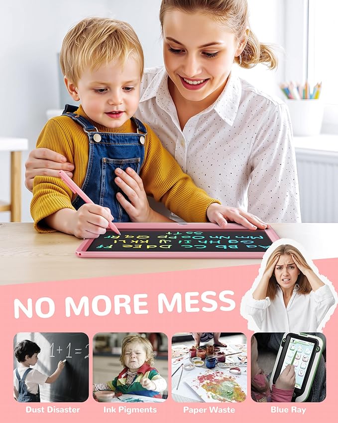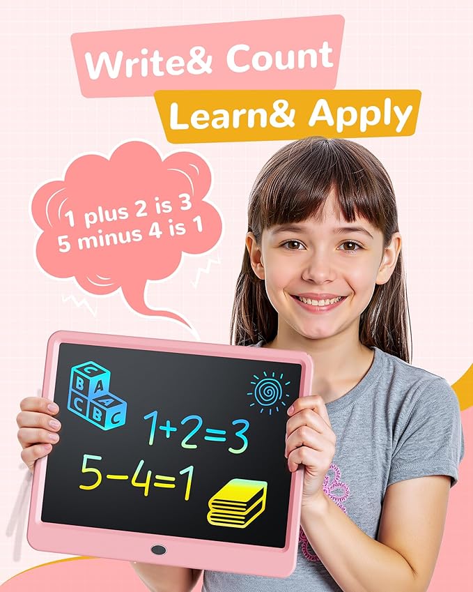 KOKODI LCD Writing Tablet, 12 Inch Colorful Toddler Doodle Board Drawing Tablet, Erasable Reusable Electronic Drawing Pads, Educational and Learning Toy for 3-6 Years Old Boy and Girls(Pink)