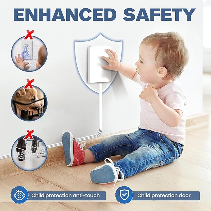 • 【ELEVATE YOUR SPACE】Effortlessly hide power strips and cords with our sleek outlet cover extension cord.Combine power strip and proofing features, seamlessly blend functionality with style in your bedrooms and living rooms.Upgrade your decor with our flat outlet extension cords for a neat and organized home.