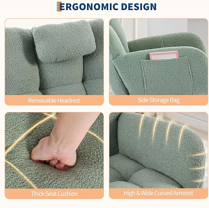 • 【Durable Rubberwood Frame & Premium Teddy Velvet】Expertly crafted with kiln-dried rubberwood and reinforced leg stabilizers, this glider rocker withstands 300+ lbs effortlessly. The flannelette upholstery resists pilling while maintaining cloud-like softness through countless washes - ideal for nursing mothers and sensitive baby skin.