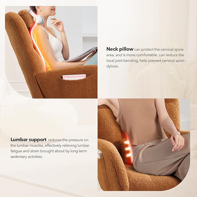 • 【Stylish and Functional Design】The modern wingback design of this children's rocking chair elevates its elegance and style quotient. Additionally, each armrest is equipped with a spacious side pocket, providing convenient storage for magazines, TV controllers, or other small items.