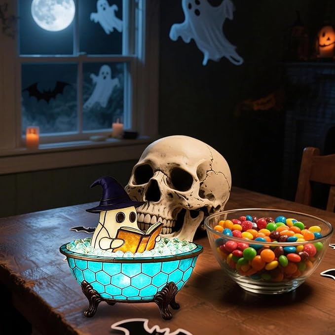 • Relaxing & Functional Illumination: Enjoy the perfect Ghost Flickering Nightlight effect or steady, soothing glow. Ideal for bedtime stories, late-night reading, creating a calming bath atmosphere (Ghost Bubble Bath Lamp), or providing gentle navigation as a Nightlight for Halloween or every night.