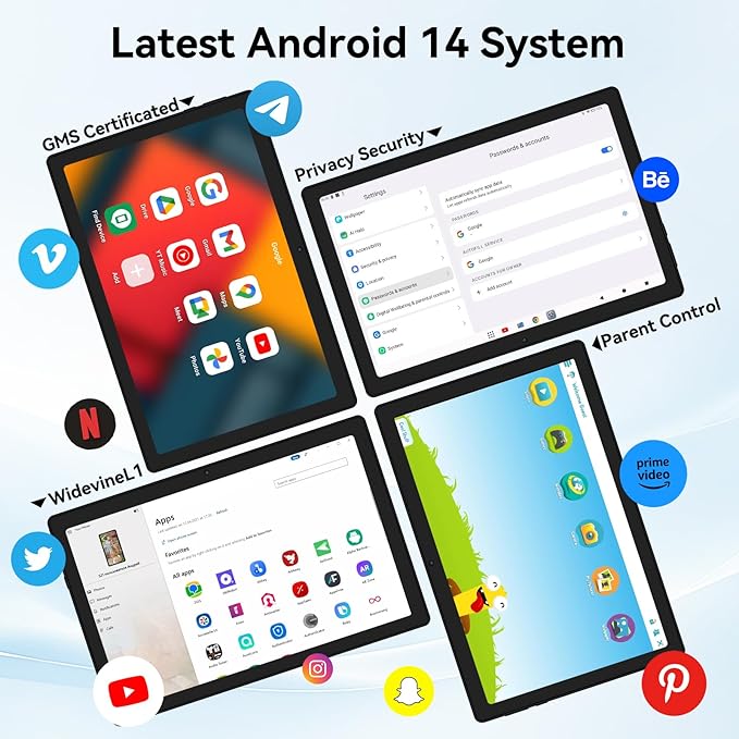 • 2025 New Android Tablet - Powered by the latest Android 14 AUMIOS system and A523 Octa-Core processor, the tablet improves the performance and efficiency, gives users more control over their data and personal information, and enhances user information protection and accessibility features. Tablet use more efficient, an excellent companion for life