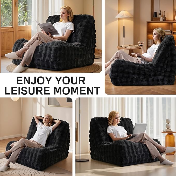 • Soft Touch Fabric: This bean bag chair is wrapped in premium breathable faux bunny fur with fine texture, has the characteristic of wear resistance, skin-friendly and pet friendly. It can also keep warm when used in winter.