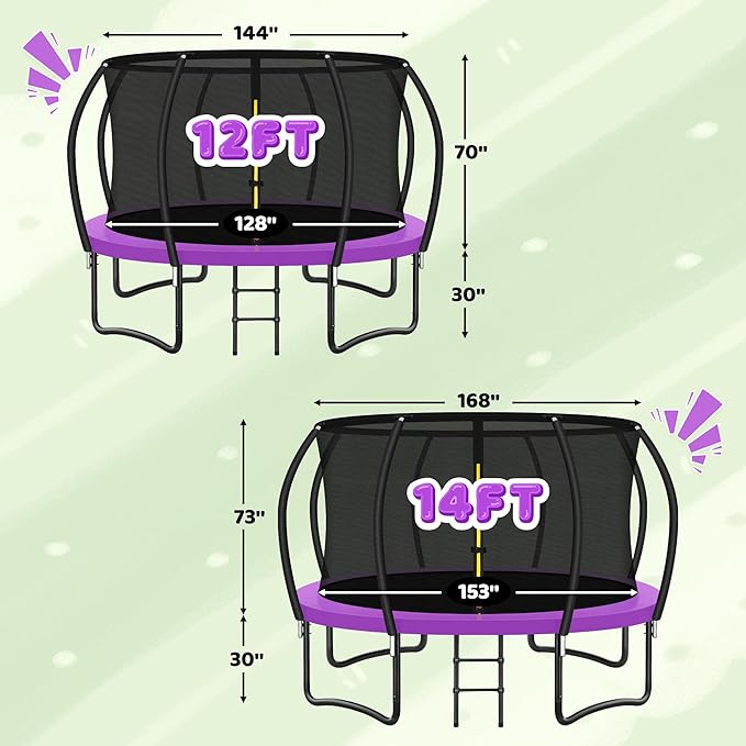 • 【Sturdy and Durable】Turn your yard into an amusement park-instantly! All steel frames are made of high-strength galvanized steel pipes, with anti rust coating treatment. The fence is also covered with waterproof thick foam, which can still be new after a period of use. The JELENS outdoor trampoline comes in a variety of sizes and colors for children to choose from, making it a stage in the air where pure joy can bloom freely during jumping!