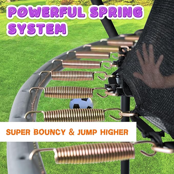 • 【Easy to Install】Easy assembly, joyous start right away! The package includes all necessary accessories for trampoline installation, and the installation guide is easy to read and understand, you can swiftly and easily assemble the trampoline. Our design team fully considered the convenience of trampoline installation during the design process so that your child can indulge in the joy of bouncing without any significant waiting time.