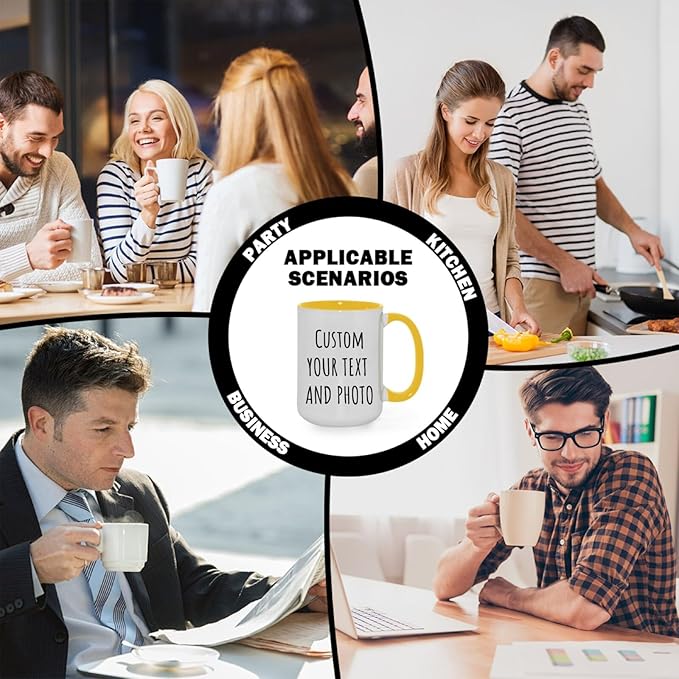 Ship Next Day Custom Mug Design Your Own Photo Text Personalized Picture Gifts for Women Men Customized Gifts Idea Personalized Coffee Mugs 11oz Yellow Handle